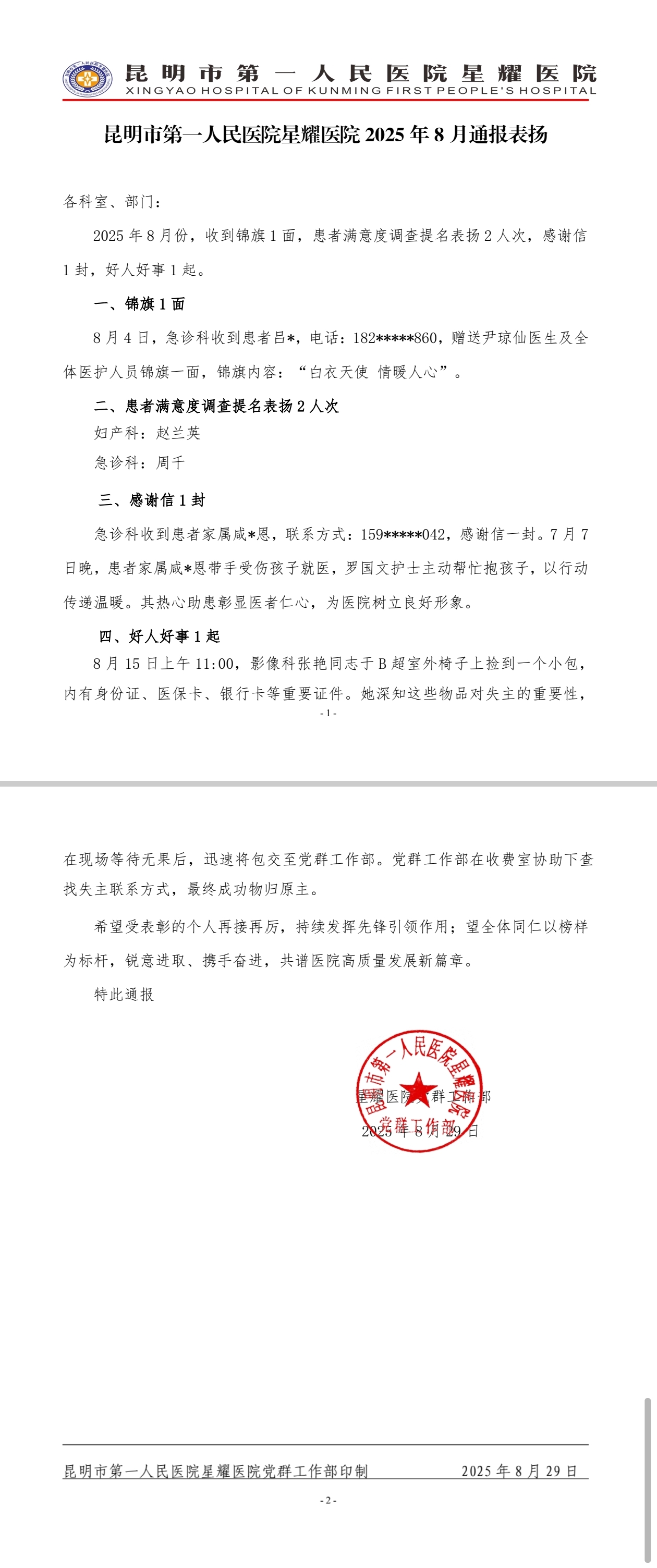 昆明市第一人民医院星耀医院是一所集社区医疗服务、疾病预防、康复指导、健康教育、卫生信息管理等功能为一体的二级综合性非营利性社区医院。