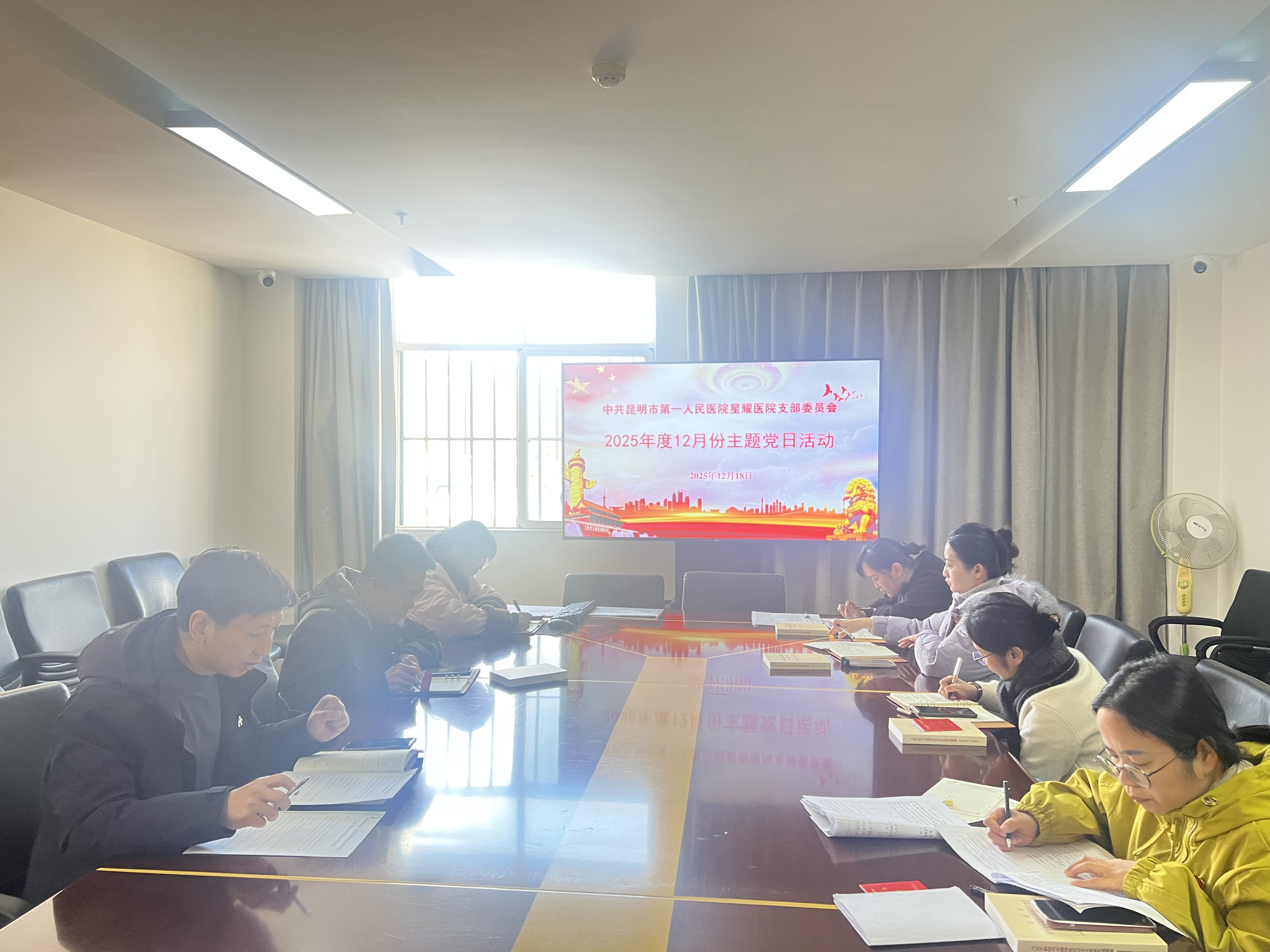 为深入学习贯彻习近平新时代中国特色社会主义思想,全面落实党的二十届四中全会精神,推动党建与业务深度融合,2025年12月18日下午,星耀医院党支部在门诊六楼党员活动室,顺利召开12月份主题党日活动及第四季度党员大会、党课暨意识系统玲玉情况分析研判会议。支部全体党员参加。