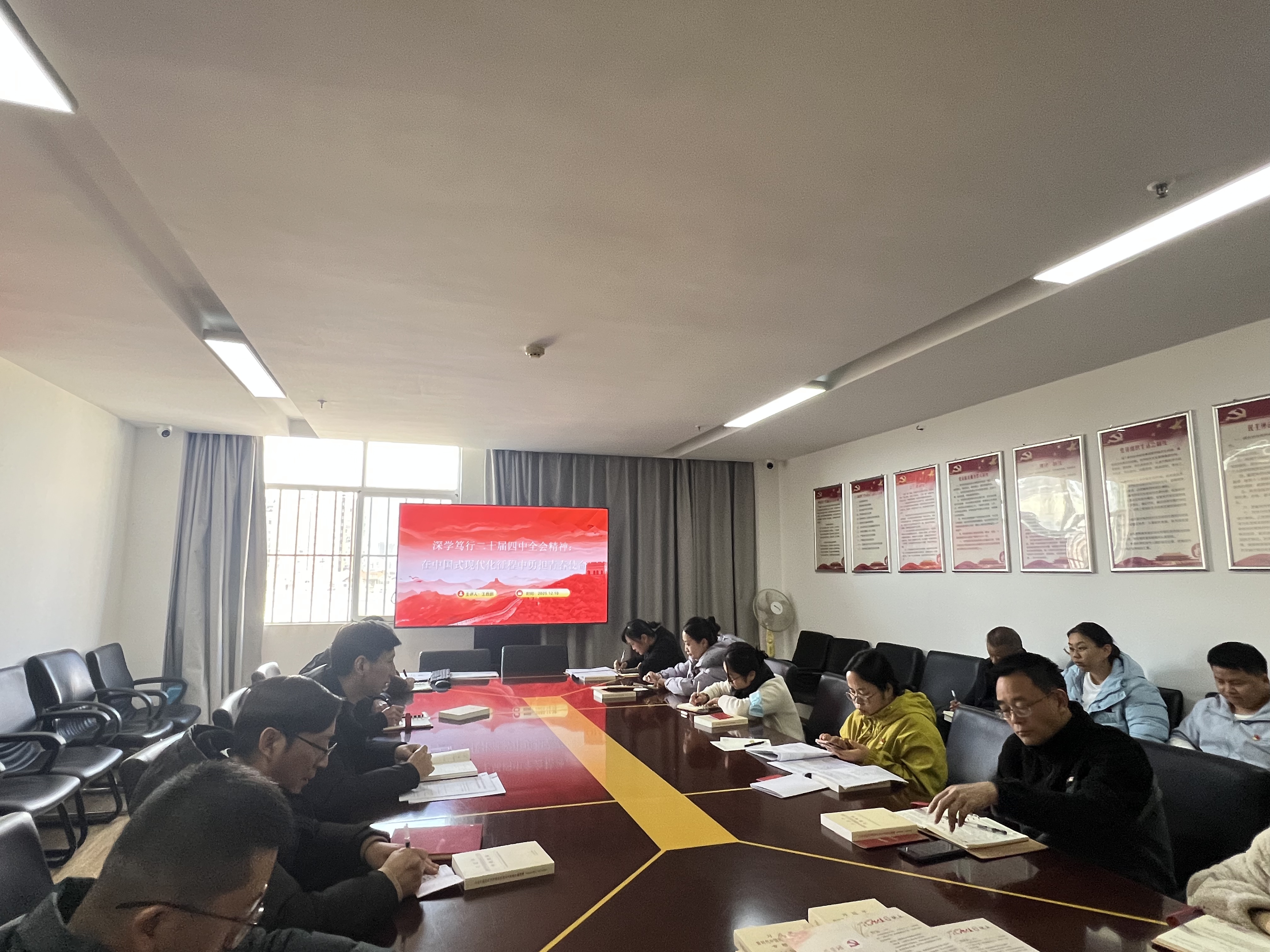 第二阶段召开第四季度党员大会。会议在奏唱《国歌》后,听取并审议了第四季度意识形态研判报告及2025年度党建、党风廉政建设、意识形态与统一战线工作总结。组织委员讲授了《深学笃行二十届四中全会精神:在中国式现代化征程中勇担青春使命》专题党课。