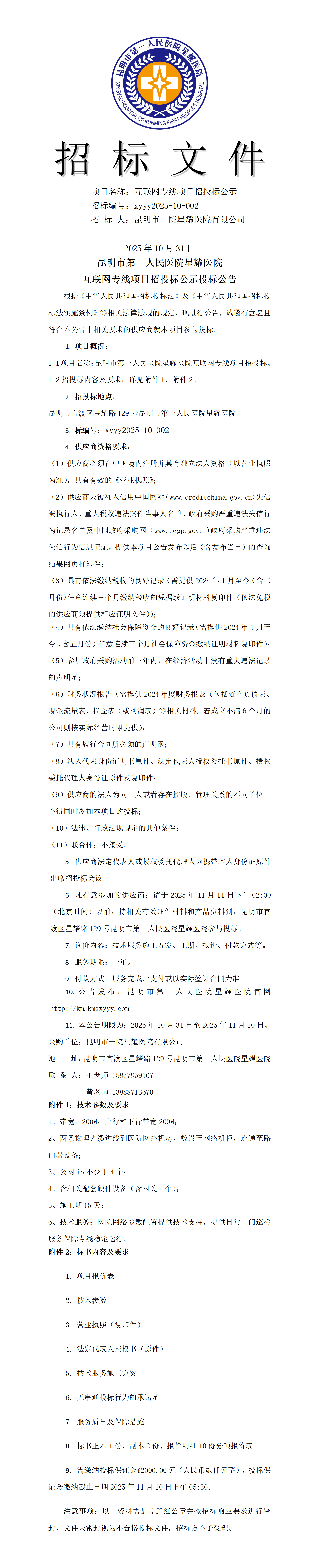 医院互联网专线项目招投标公示